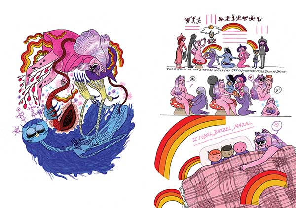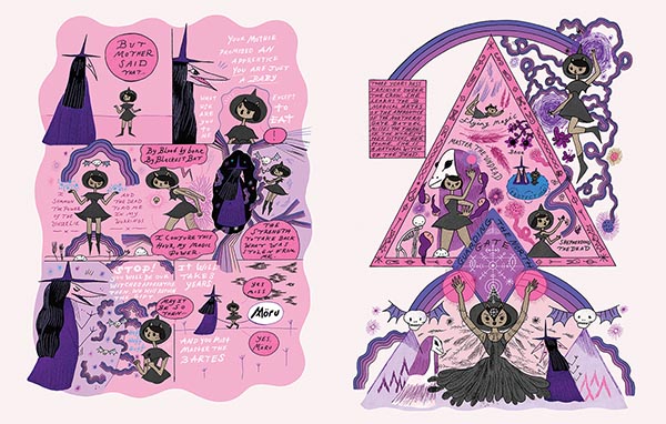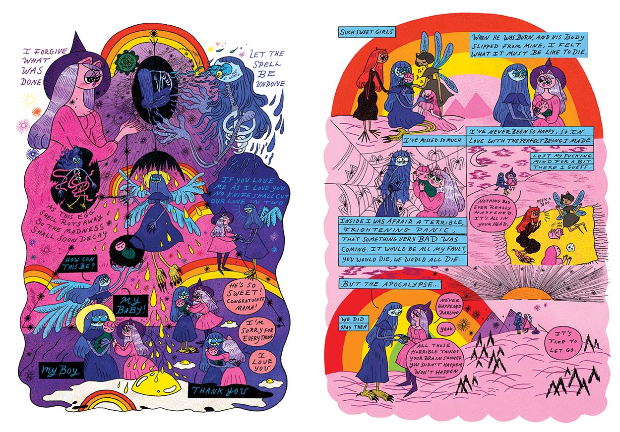 Donya says: “This book is a culmination of many projects and interests, cannibalised and conjured into a sweeping saga. It’s a dark fairytale following a journey into motherhood, and all the perils it brings – joy, fear, exhaustion, transformation and love. These feelings amplified and mutated into monsters, witches and ghouls made for a fun and cathartic outlet for me.”